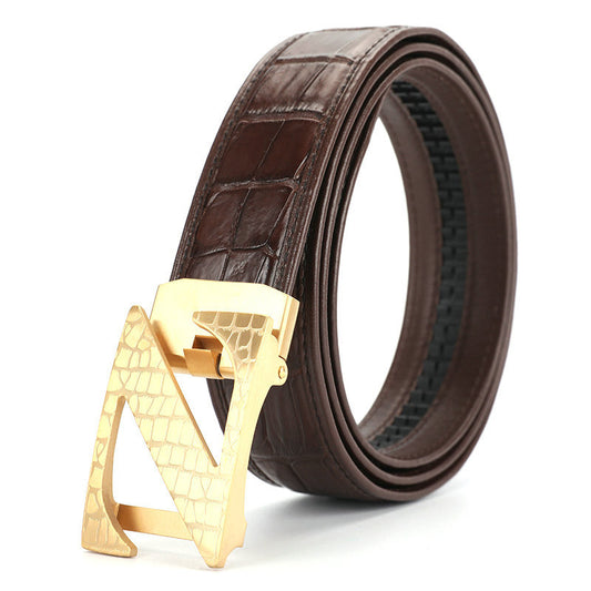 シャムワニ皮 本革製 自動バックル メンズベルト カジュアル ビジネスや通勤