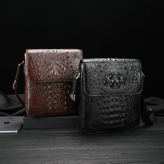 新型メンズショルダーバッグ シャムワニ皮本革ビジネス通勤大容量斜めがけバッグ