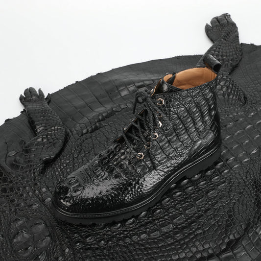 ワニ皮 本革製 メンズマーティンブーツ ビジネスカジュアルブーツアウトドアショートブーツ