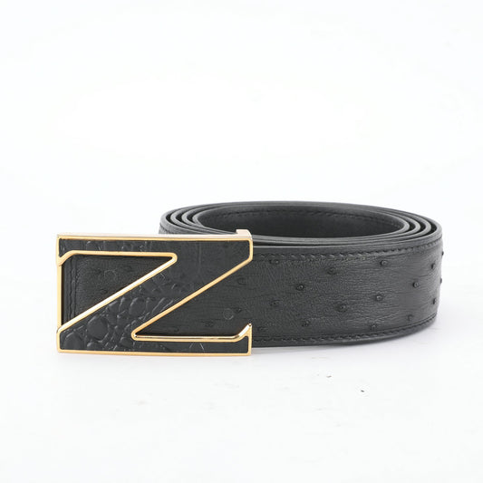 ダチョウ皮 本革 メンズベルト ファッション ビジネスカジュアル 平滑バックル 男性ベルト