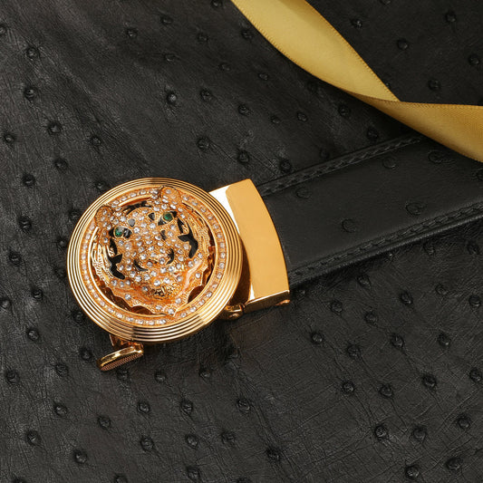 新型ダチョウ皮 本革メンズベルト自動バックル 虎の頭 ファッション ビジネス カジュアルベルト