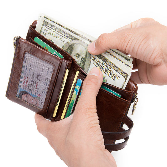 メンズ短財布 牛皮本革製 ファスナー多機能 男性用カードバッグウォレット