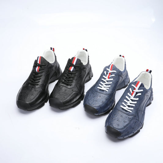 ダチョウ皮 本革製 メンズスニーカーファッション 耐摩耗メンズシューズ