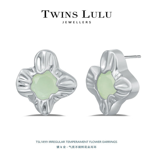 TWINS LULU韓国風気品ロマンチック花の不規則なハンマー模様のイヤリング