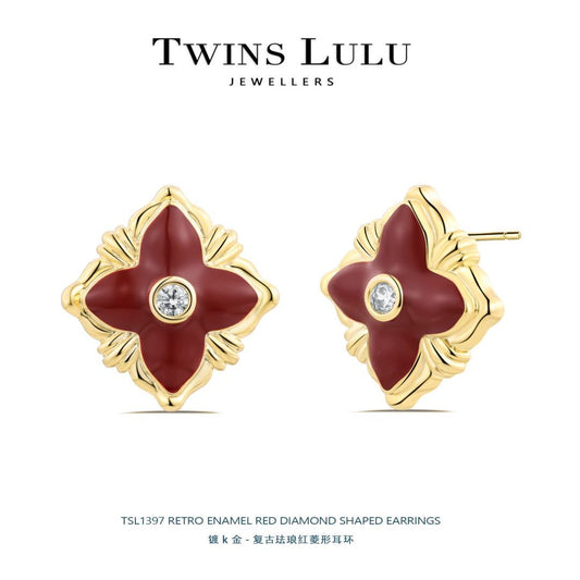 TWINS LULUおしゃれ洗練された個性四つ葉クローバーイヤリングレトロ贅沢初秋のアクセサリー