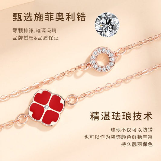 Chomel Kiss四つ葉クローバーの純銀ブレスレット女の子ins高級感誕生日プレゼント