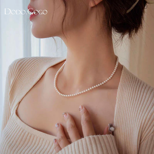 DODOGOGO 定番クリーム白babyビーズパールネックレスセーターチェーン少女鎖骨チェーン