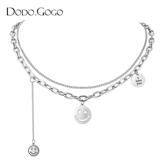 DODOGOGO 星の笑顔2層チタン鋼ネックレスシンプルカップル2024春夏新作ネックレス