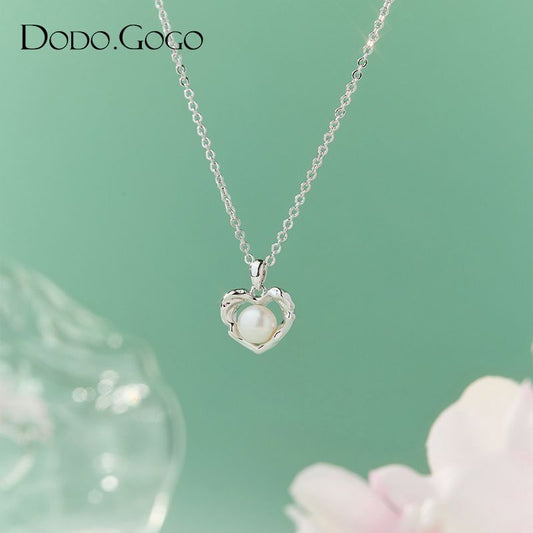 DODOGOGOハート透かし彫りの真珠ネックレスレディースパール鎖骨チェーン2024新作秋冬ネックレス