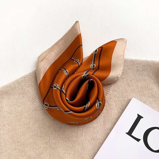 シルクスカーフプリント柄ネッカチーフファッション飾り何とでも合う気質小さなスカーフ