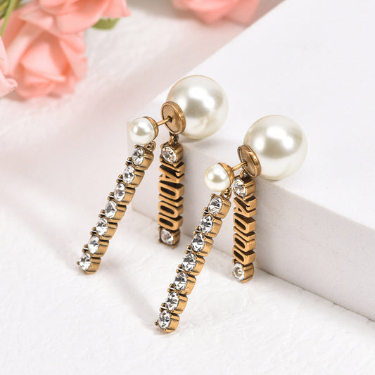 イヤリング大小パール字母柄ファッションロングペンダントピアス