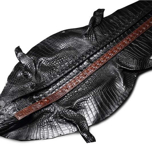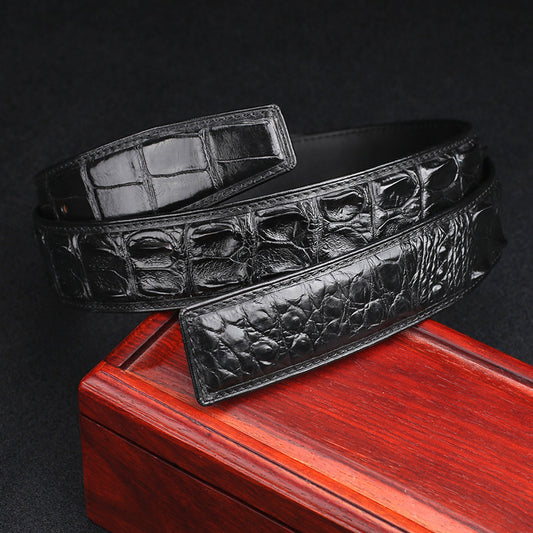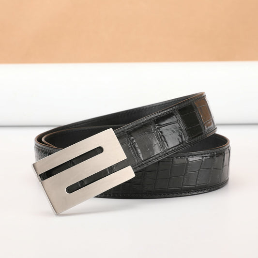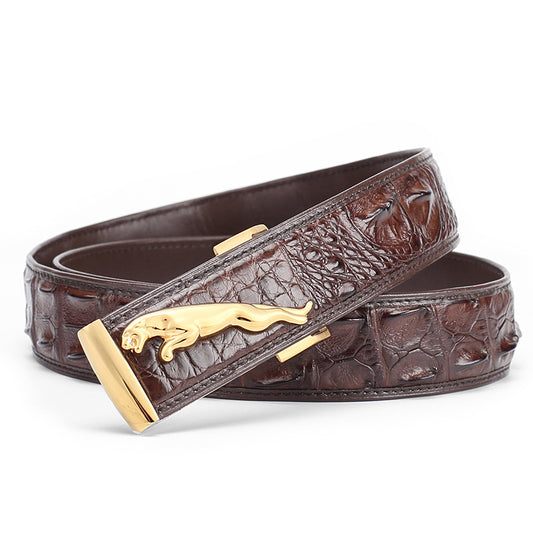 • メンズベルト シャムワニ皮 本革製 自動バックル カジュアル 男性ベルト