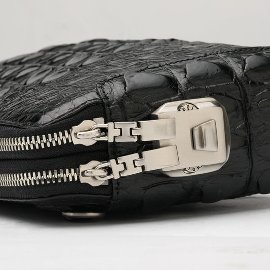 • メンズバッグワニ皮本革 ビジネスダブルファスナー セキュリティロック プライバシー保護 ハンドバッグ
