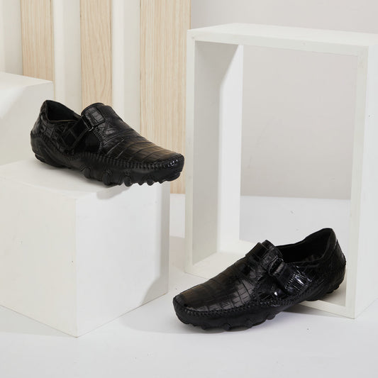 • ワニ腹の皮 本革メンズ革靴 ゴム底モカシン ファッションカジュアル ビジネスシューズ
