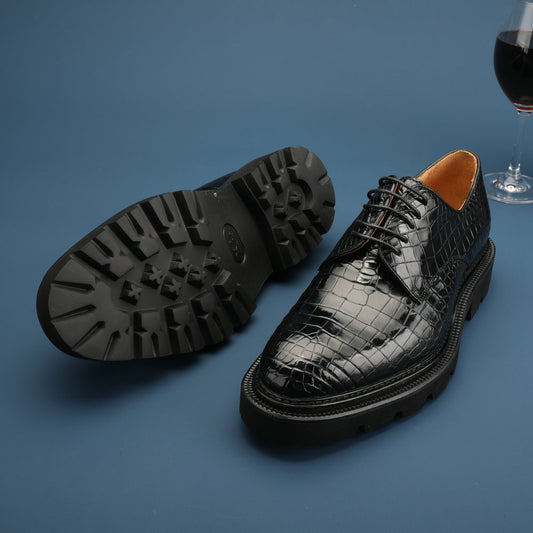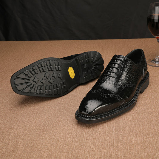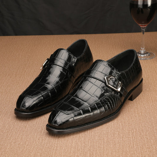 ワニ腹の皮 本革製メンズ革靴ビジネス正装男性シューズ