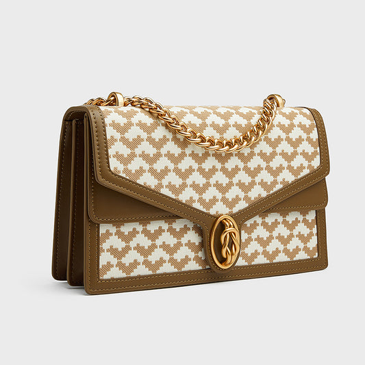 本革のスクエアバッグ高級感チェックレディースチェーンバッグ斜め掛けバッグショルダーバッグ.ポシェット