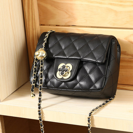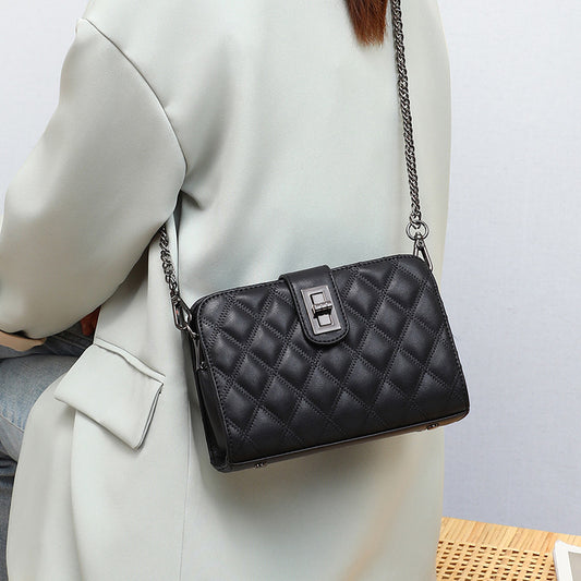 本革チェック柄チェーンバッグ斜め掛けバッグシンプルエレガント何とでも合うショルダーバッグ.ポシェット