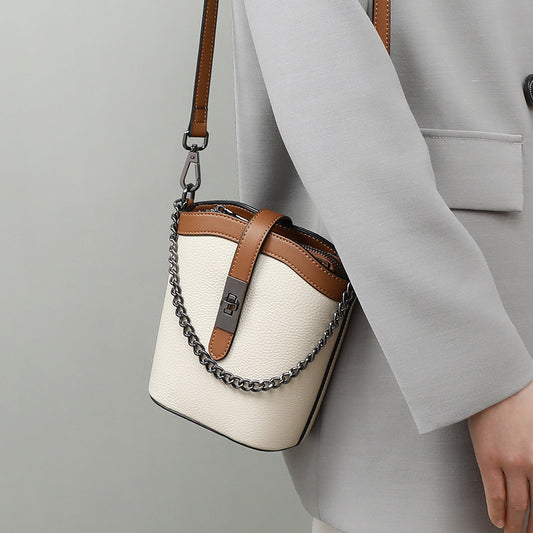 斜め掛けバッグバケツバッグレディースバッグ本革チェーンバッグカラーマッチングレトロショルダーバッグ.ポシェット