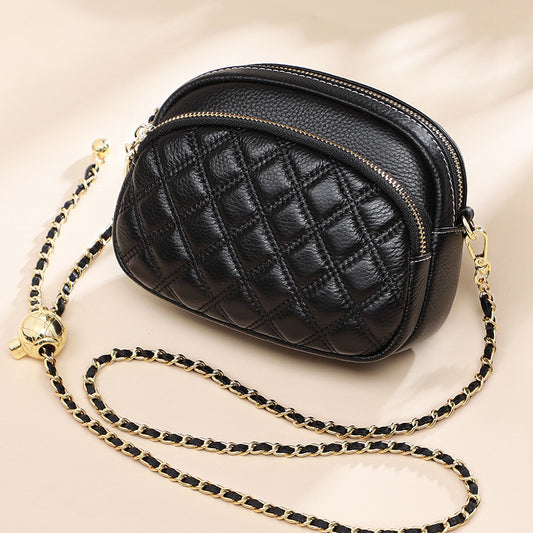 レディースバッグファッションチェック柄斜めショルダーバッグ本革チェーンバッグ何とでも合うショルダーバッグ.ポシェット