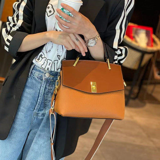 スターと同じ女性バッグ本革ファッションハンドバッグ斜め掛けバッグ牛革シンプル何とでも合うショルダーバッグ.ポシェット
