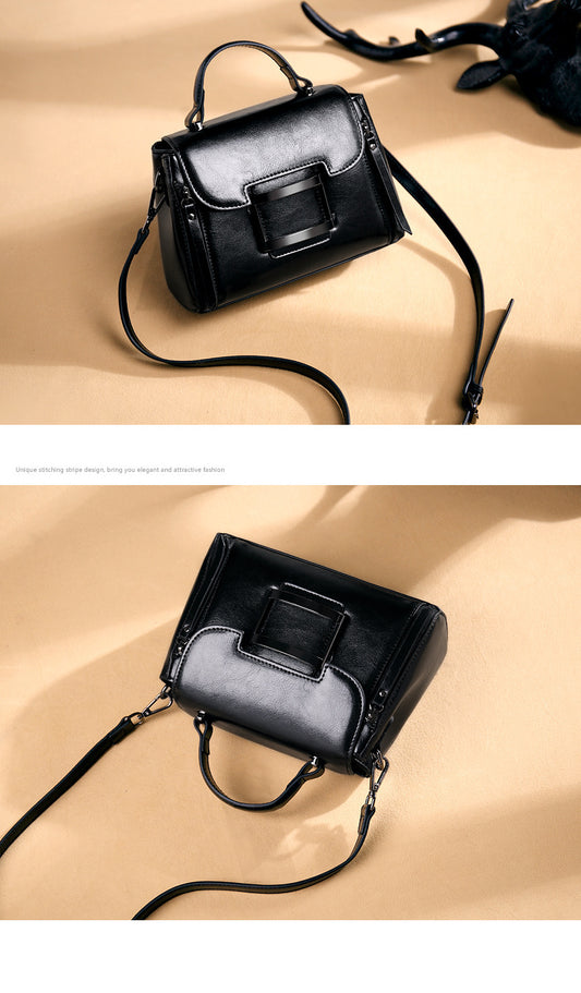 本革女性ハンドバッグ高級質感斜め掛けバッグ牛革スクエアバッグシンプル通勤何とでも合うショルダーバッグ.ポシェット