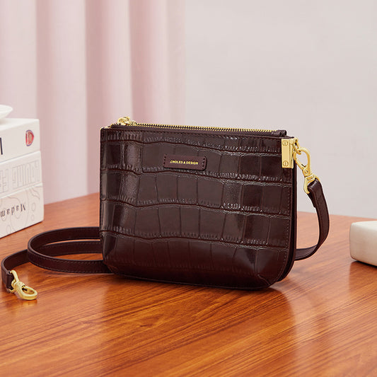 レディースバッグ本革鰐柄わきの下バッグ斜め掛けバッグ何とでも合うシンプルショルダーバッグ.ポシェット