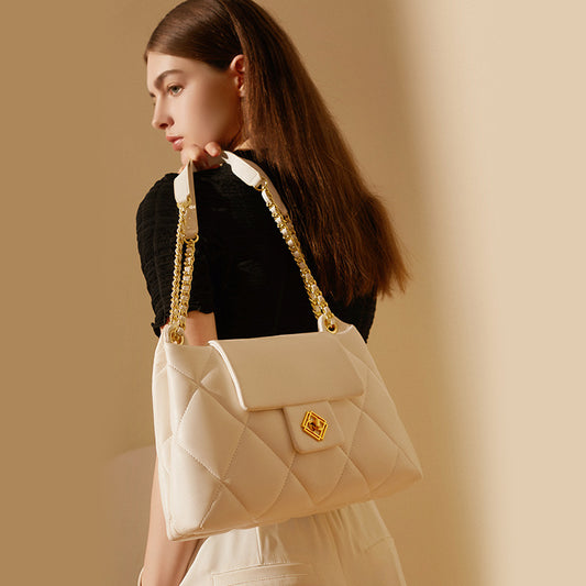レディースバッグ本革サドルバッグファッションチェーンバッグ高品質シンプル通勤ショルダーバッグ.ポシェット