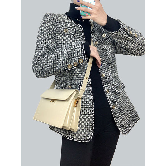レディースバッグ本革ファッションチェック柄スクエアバッグ高品質シンプルエレガントショルダーバッグ.ポシェット