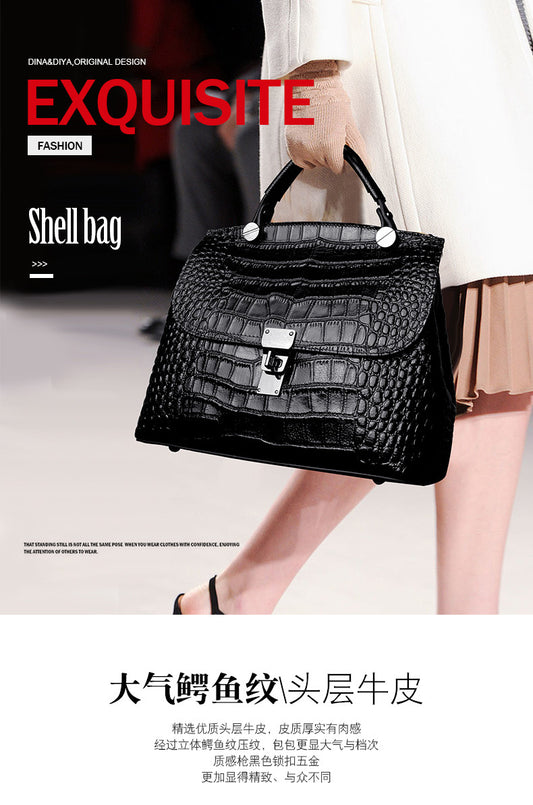レディースバッグ本革ハンドバッグトップに牛革鰐柄ファッションショルダーバッグ通勤OLハンドバッグ.カバン