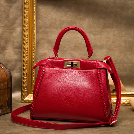 本革レディースバッグトップレイヤー牛革ハンドバッグショルダーバッグ大容量ロックバッグレトロハンドバッグ.カバン
