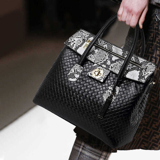 レディースバッグ本革ファッションハンドバッグ大容量パイソン柄スプライスショルダーバッグ気質エレガントハンドバッグ.カバン