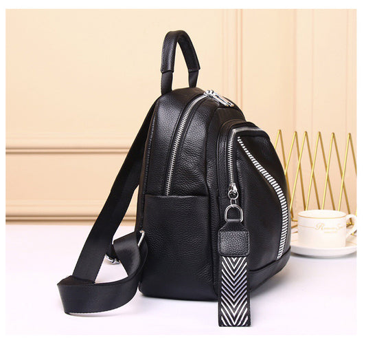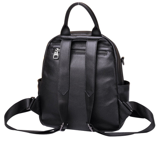 ブラックバックパック大容量カジュアルヘッドレイヤー牛革バックパック手提げ可能ショルダーバッグ