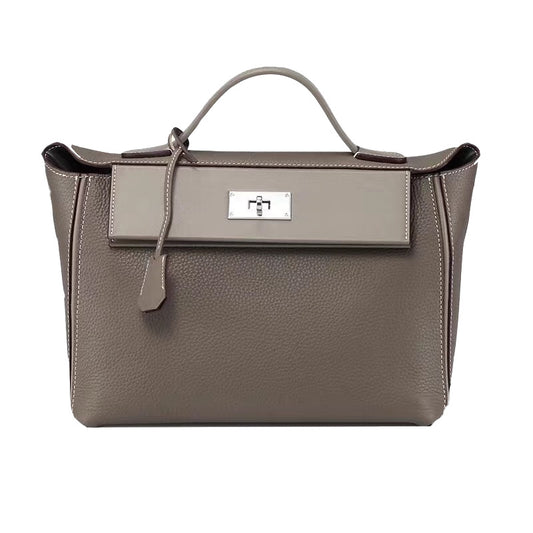 おしゃれ気質の女性用収納バッグ牛革ハンドバッグ大容量マルチグリッド本革手提げバッグ