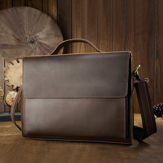 メンズハンドバッグ手提げかばん手作業牛皮本革製クレイジー・ホース斜めがけショルダーバッグ男性用OLビジネスカジュアルブリーフケースパソコンバッグ