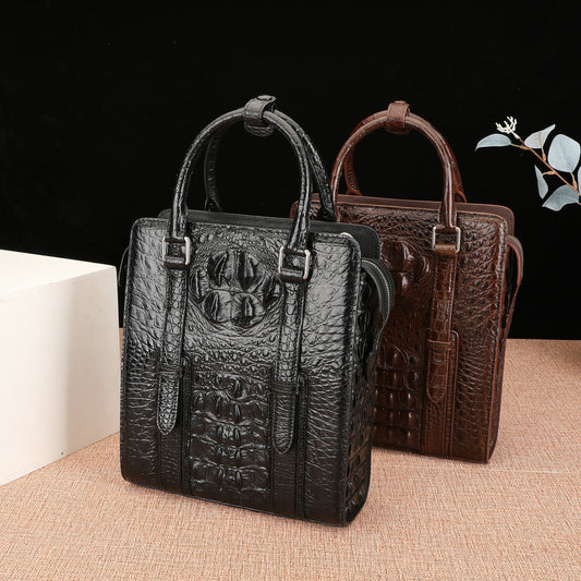 ワニ骨の皮 本革 メンズブリーフケース ビジネス 通勤 カジュアル 斜めがけ ショルダーバッグ縦型手提げバッグ