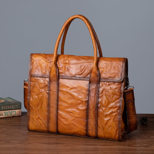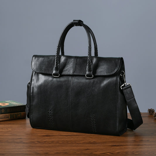 メンズブリーフケース牛革本革製シンプルファッションレトロカジュアル ビジネス男性用ハンドバッグパソコンバッグ
