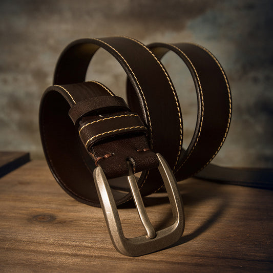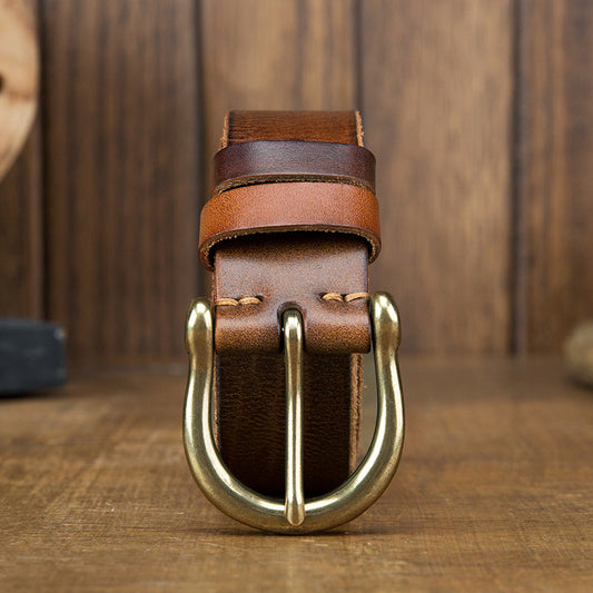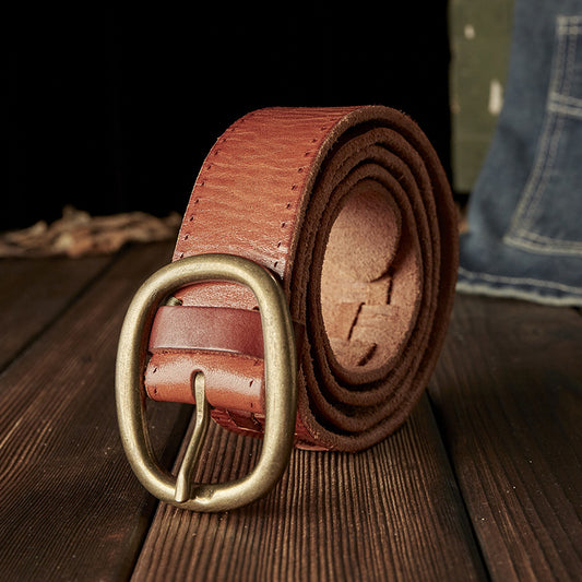 メンズベルト手作り牛革本革製レトロ銅製針バックルカジュアル個性男性用ベルト