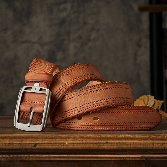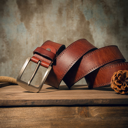 メンズベルト 手作り 牛革 針バックル 韩国ファッション カジュアル レトロ男性用ベルト