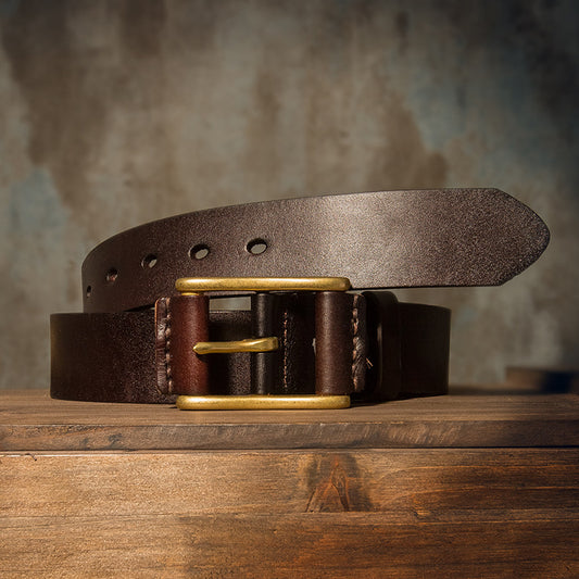 メンズベルト オリジナル 手作り レトロ 牛革本革製 銅製針バックル男性用ベルト