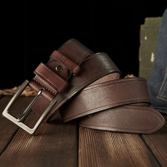 メンズベルト手作り牛革本革製レトロシンプルカジュアルファッションステンレス製針バックル男性用ベルト