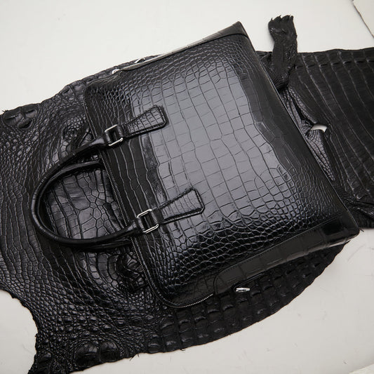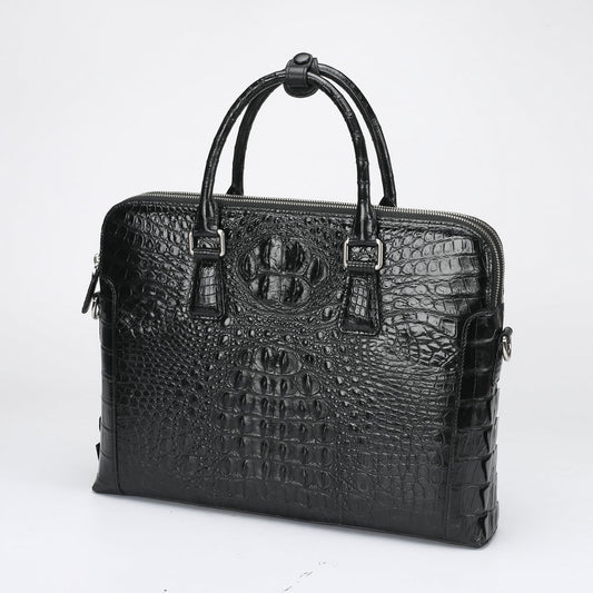 シャムワニ腹の皮 ブリーフケース本革 メンズバッグ ダブルファスナー ハンドバッグ ファイルバッグ 男性用ビジネスバッグ 手提げかばん
