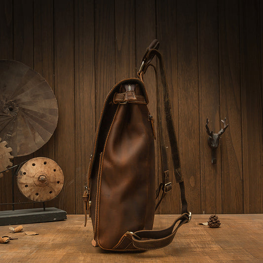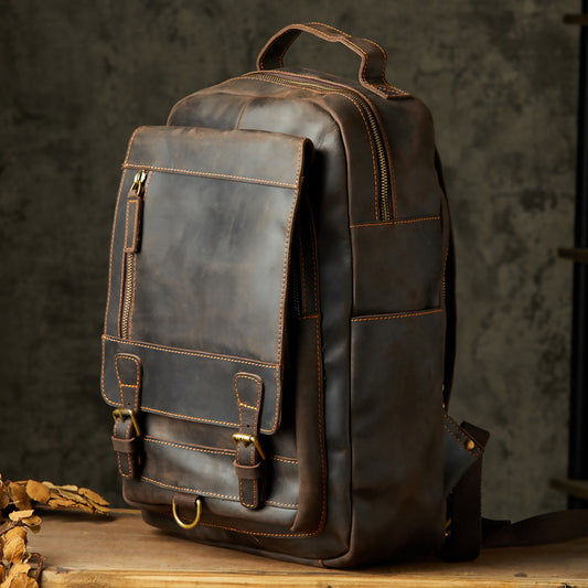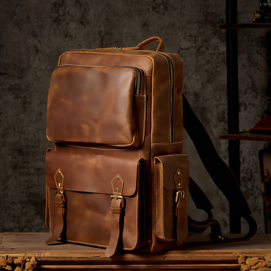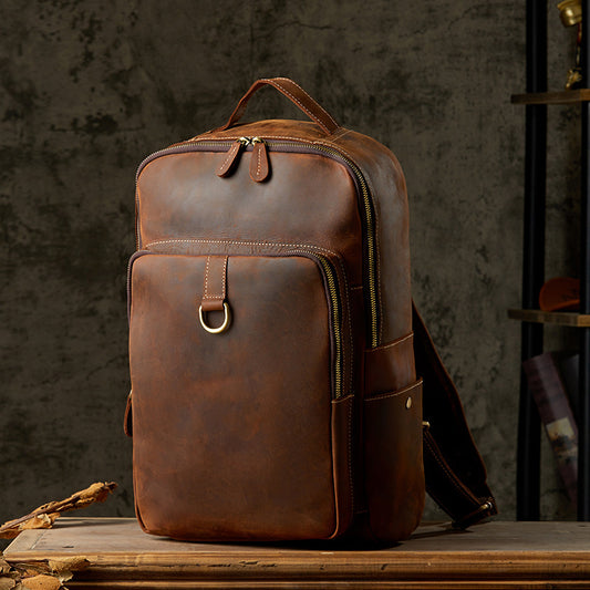 メンズリュックオリジナル手作り牛革本革製クレイジー・ホース レトロカジュアルビジネスパソコンバッグ