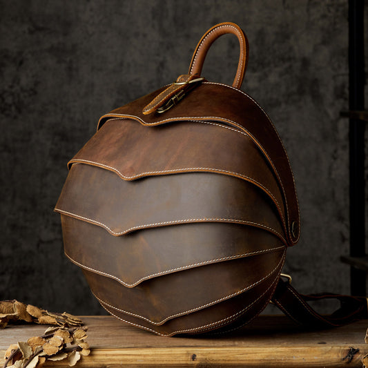 メンズリュックサック レトロ 牛革 クレイジー・ホース 手作り 個性ファッションビートルズ男性かばん