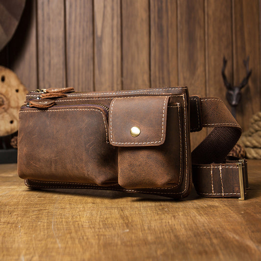 メンズウエストポーチ手作り牛革本革製カジュアルレトロ バストバッグアウトドアスポーツ韩国ファッション個性斜めがけバッグ