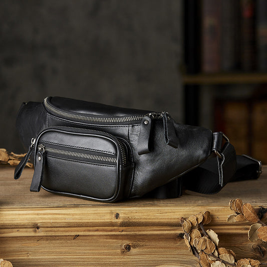 メンズウエストポーチ手作り牛革本革製スポーツバストバッグ多機能ファッション男性用斜めがけバッグ
