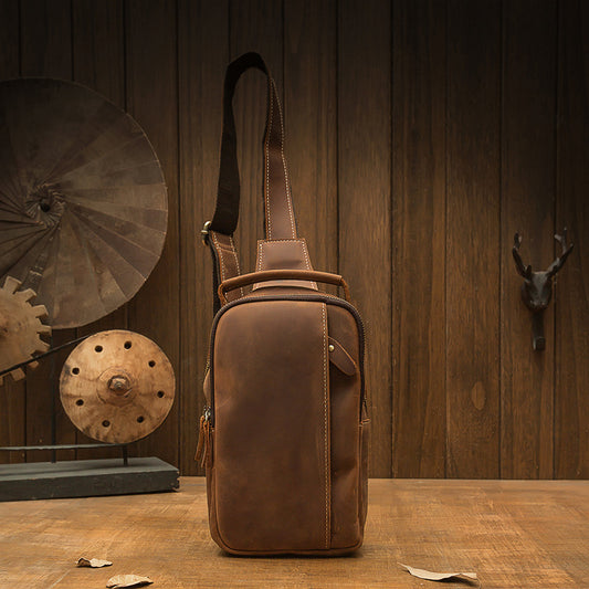 メンズバストバッグ 手作りオリジナル 牛革本革製 クレイジー・ホース 個性レトロカジュアル男性斜めがけバッグショルダーバッグ