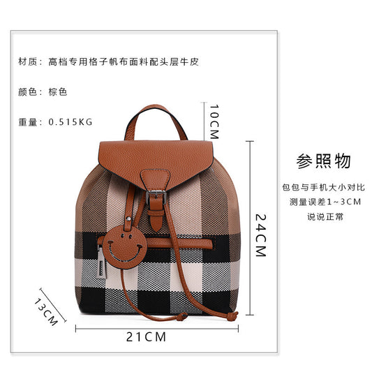 レディースパックチェック柄皮付きトレッドファッションショルダーバッグハンドバッグ 帆布リュックサック