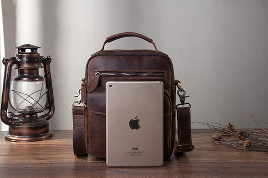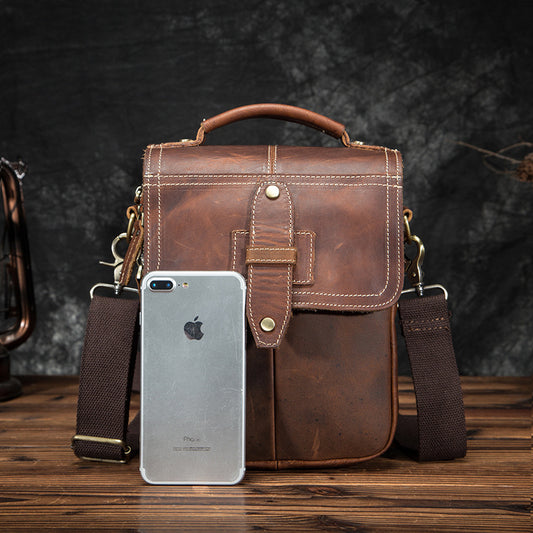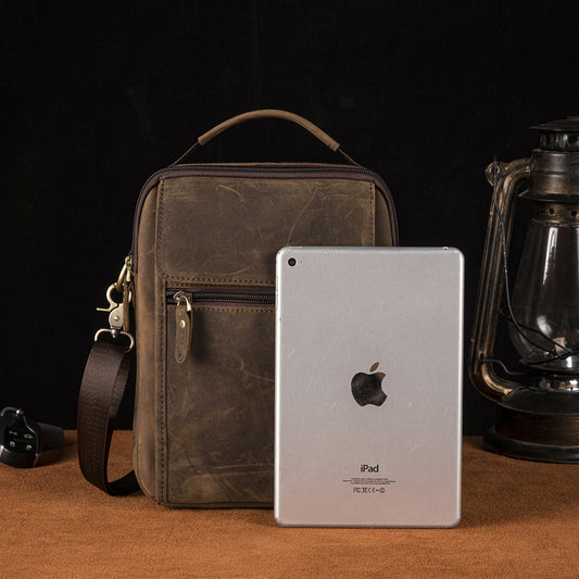 メンズ斜めがけバッグ牛革本革製レトロ旅行アウトドア 男性ショルダーバッグ