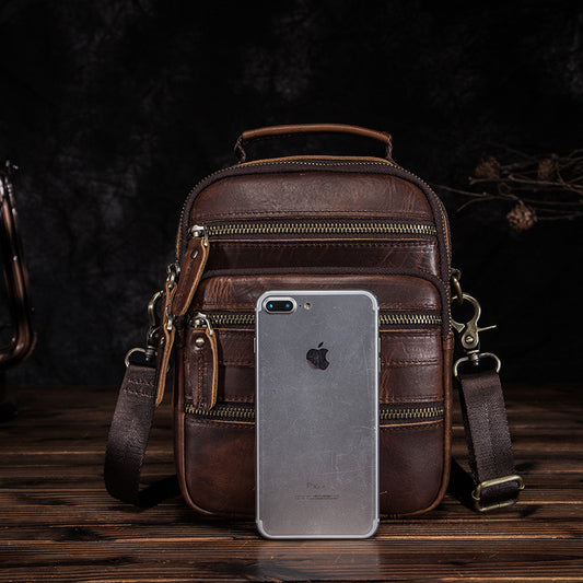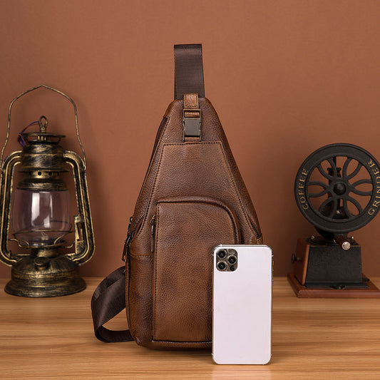 メンズバストバッグ牛革本革製レトロアウトドア多用途男性用斜めがけバッグ