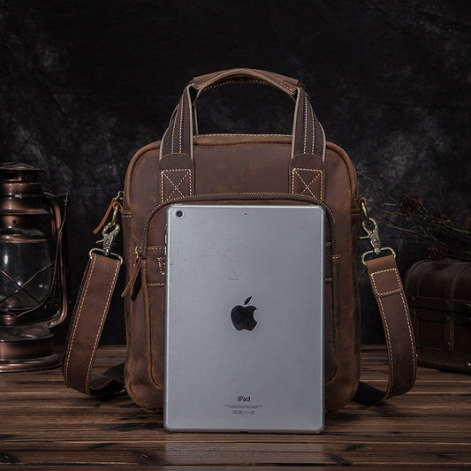 メンズショルダーバッグ牛革本革製レトロブリーフケース男性用斜めがけバッグ